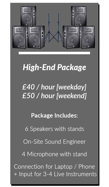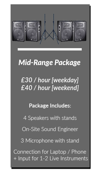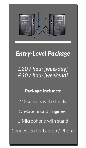 (Please note: All systems comprise an onsite audio engineer who will configure and operate the equipment for the entirety of your occasion.)